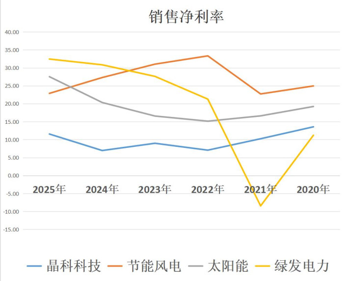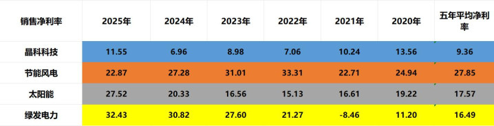 节能风电、太阳能、绿发电力三家的净利率在曩昔五年高潮。