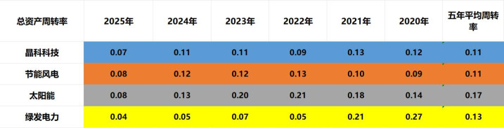最新三季度营运智商:太阳能=节能风电>晶科科技>绿发电力